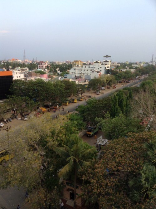 So it was a busy morning of learning at Meenakshi's (the three-breasted re-incarnation of Parvati, wife of Shiva) temple. No photos, sadly, as security was very tight and you couldn't bring anything into the 16 acre site, but you can use your imagination: huge colourful Dravidian-style towers (8), a Hall Of A Thousand Pillars that was actually aptly named, a bejewelled and beflowered temple elephant who blessed you for ten rupees which he accepted in his trunk, offering bowls of fruit and jasmine everywhere and Hindus at worship. The walls are painted in red and white stripes, white for death (ash) and red for life (blood).