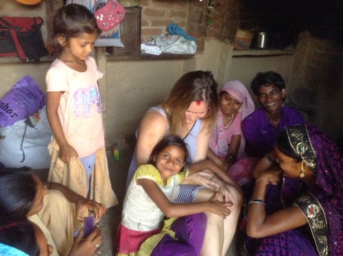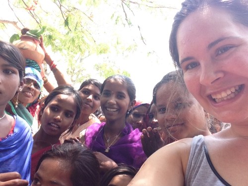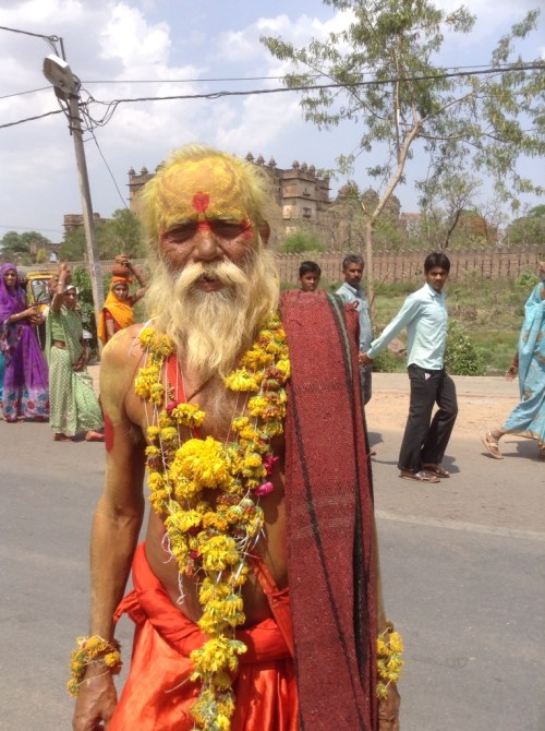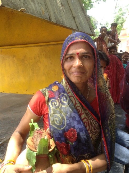 Today's adventure was just down the road to the Cenotaphs, monuments to the dead kings of the area. From there, I took the path along the Betwa River, and ran into a party. Quite literally. Along the narrow path, between the rocks and the river, heralded by the beating of drums, came a procession of parrot-colorful women, carting on their heads terracotta urns with coconuts and teak leaves and trailed by an equal number of men. Before I knew it I was surrounded with staring faces and a girl about my age was pushing to front. Her English was a heck of a lot better than my Hindi so she introduced herself and explained that it was a holy day so the town was celebrating, starting with collecting water to take to the temple. The next hour passed in a sweaty rainbow blur as I was introduced to tens of sisters, aunties, mothers, friends, cousins – and held countless babies. I was then tugged around by the hands of the little ones to visit their houses.