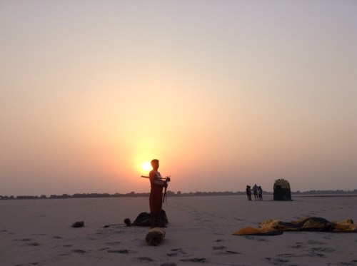 (Snarky interlude: After setting up our tiny “two man” tents”, the crew and the boys played beach cricket. The Terrific Texan went down sliding for a catch, squealing in pain. I may have rolled by eyes but, if so, no one saw so it doesn't count. He insisted upon being carried by the crew to our girl castle/the central groundsheet and deposited in our midst (breaking our hair braiding circle), then upon the tour leader inspecting his groin (awkward for everyone). Whilst Texas was claiming that he had tunnel vision, moaning and rolling — despite instructions to keep still — and generally being dramatic, our tour leader made it clear that he had to decide whether he needed to go to hospital ASAP as the sun was dropping and we were just off centre in the middle of nowhere. The histrionics continued. Cutting a long, loud story short, a boat came for him and he was taken away for the three hour drive to Varanasi in pitch black. Spoiler alert: he'd sprained a muscle and was dehydrated again. Honestly.)
