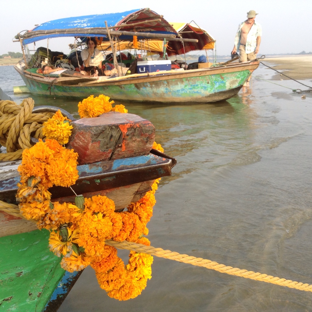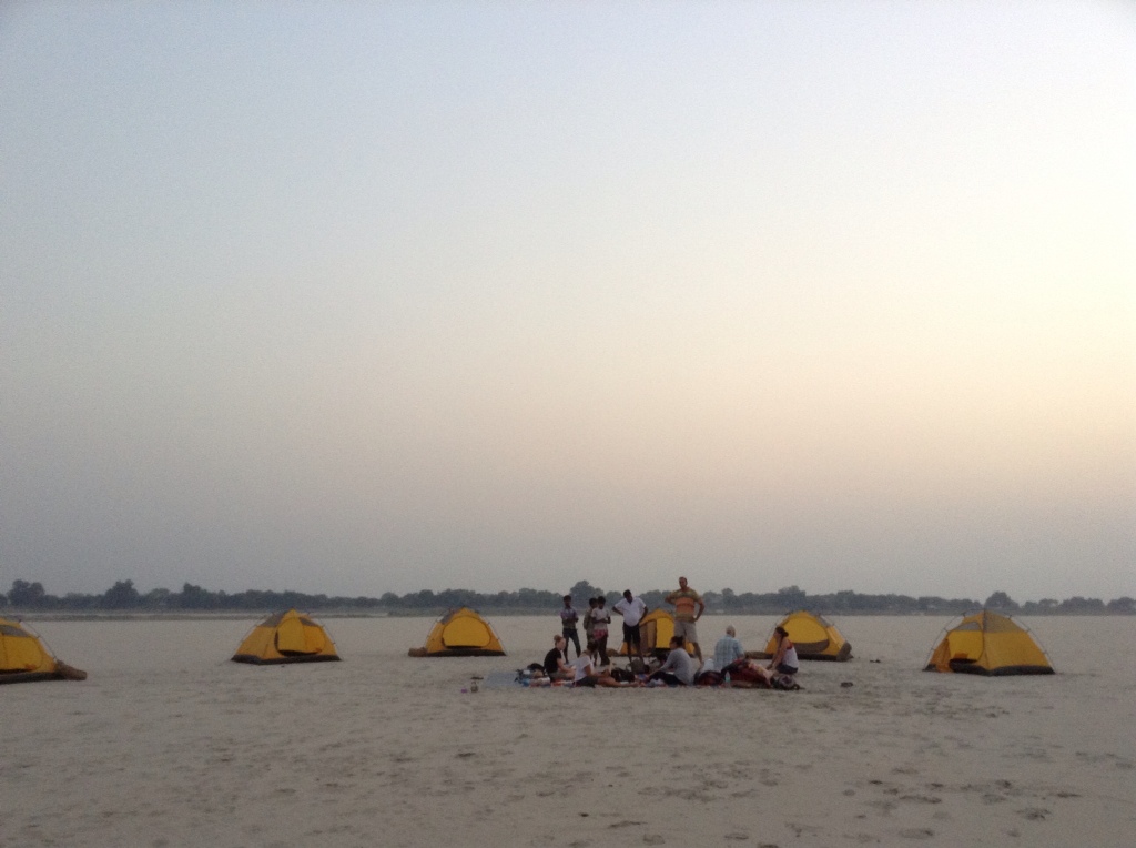 Right before sundown our three little boats emptied out onto a long sandbar-like island in the middle of the Ganges. We were shipwrecked.