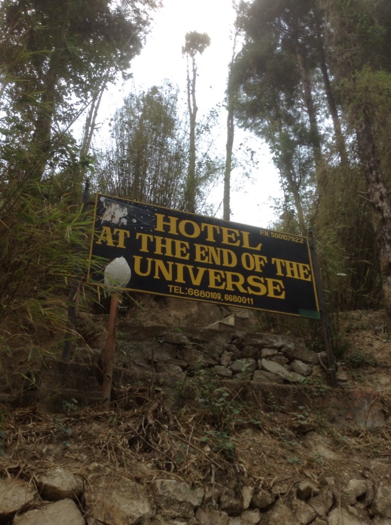 I've decided to come back and do Everest Base Camp next year. I'm recording this for posterity so I don't chicken out — especially given climbing the rough hillside steps to my hotel a few hours ago is still fresh in my memory as a heroic and hideous adventure. The hotel in question is The Hotel At The End Of The Universe. I'm unsure if the Douglas Adams reference is intentional or a happy coincidence. Either way, the place is aptly named as it soars up here in the clouds, far far away from anything save a few other ramshackle guest houses and the Nagarkot village — a thin line of houses, 'fast food' places (no burgers here though, kids), 'cold stores' in which you'd be lucky to find anything even lukewarm let alone cool and rest stops. I think there are a few hotels on the other side of the ridge but I'm still dying from the stair episode and would need to gather my strength before exploring unchartered — and bloody steep — territory.