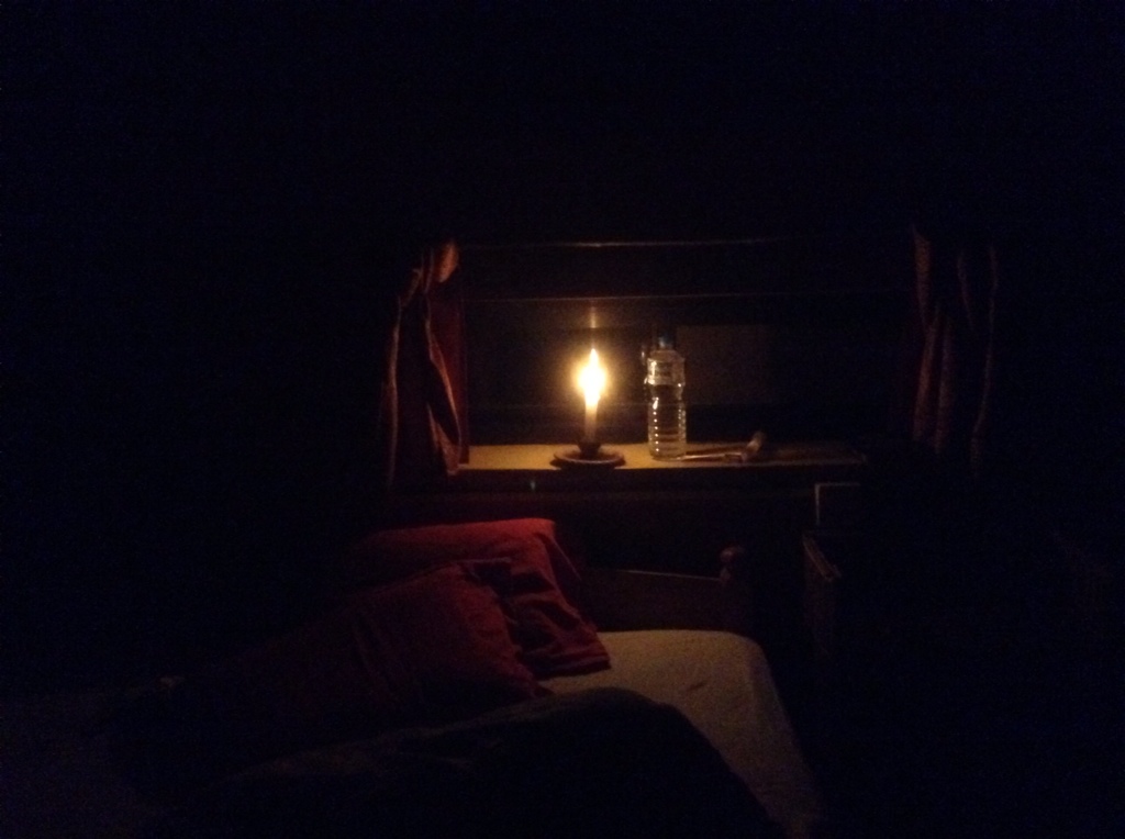 Up here, the power goes out at six, right before the sun sets. Using candles to eat dinner and read my book is romantic for all of about forty-five minutes. After that it's tiresome and a downright hazard as my little hillside cabin is made entirely of wood and I'm prone to falling asleep whilst reading…On the bright side, there's gas-powered hot water which is a dream come true, temperamental wifi, Christmassy-tasting hot Nepali chai and 270 degree views of the Himilayas when it's clear. With all of that, what's a few early nights and scary dark trips to the bathroom?