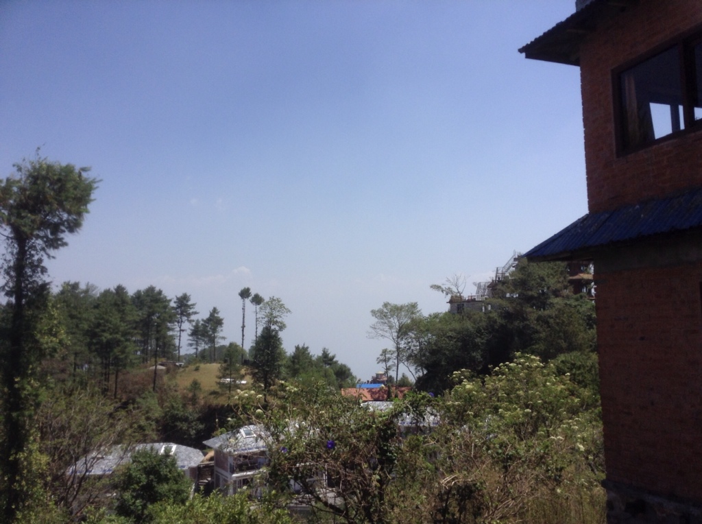 Which, let's be honest, is a pretty cool line worthy of Indiana Jones himself. Not that I knew what it meant, so I just tried to look cool as I scrambled behind — following his lead and taking my precious life-giving morning coffee — up the steep hill behind the guest house. Up to a Shiva temple that had its own 360-degree view. We saw, ever so briefly, the wide Himalayan range unfold before us, crisp against blue sky, as we sipped terrible Nepali instant coffee in awe. Then, the mountains slipped back into the haze.