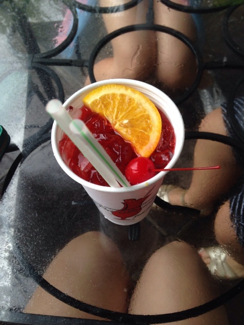We were onto our second lurid red Hurricane from Pat O’Brien’s before we thought to ask what went into them. FYI: it’s essentially KoolAid and four shots of rum. Which of course goes some way towards explaining how we soon found ourselves wandering Bourbon Street in the steamy, pouring rain in a giggling knot of linked arms, bedecked in beads, Hurricanes in ‘to go’ cups in hand. The night escalated quickly.