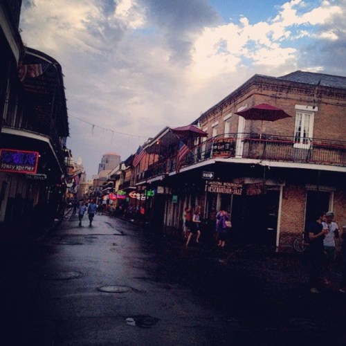 The next morning I was up, sprightly and wide awake, with the birds. One of the cab drive’s reccomendations came back to me: “breakfast at Cafe du Monde on coffee and beignet, around 6am is best”. I explored the quarter as it too woke up, then ate what only the Americans and the French could possibly consider ‘breakfast’: deliciously doughy fritters in powered sugar with creamy weak coffee. When a local remarked to me that there was ‘a serious storm a comin’ in’ and that the city was under flash flood lockdown, I looped home to wait out the torrential rain – which turned on and off as if someone was toying with a switch – and wait for Bunky & Tassels to turn up. Which they soon did, leading to last night’s Bourbon Street-centric adventures.
