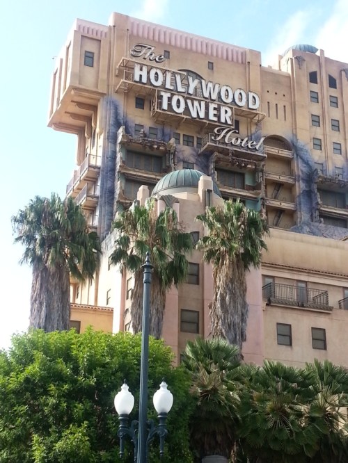 - Recharge snack at a skilfully disguised and Disneyified Starbucks: guilty pleasure espresso frappicino for me and one skim cappuccino for the more virtuous half of our duo. Now posses the energy to blackmail the mother into going on the Twilight Tower of Terror ride with me, easily the second scariest ride I’ve ever had the pleasure of screaming my way through. (This sinister looking ‘Hollywood Hotel’ looms in the sky above the park and the ‘hotel’ ‘elevator’ periodically plunges from the top floor, its doors opening to the world periodically to allow the screams of its ‘guests’ to terrify all. It’s the awesomest of all.)