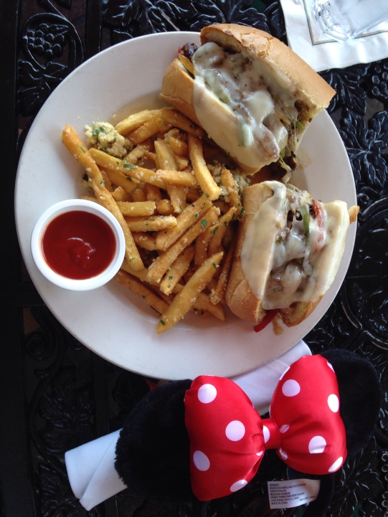 - Lunch: one of those meals you begin to regret even as you eat it, but cannot physically stop yourself pigging out on, with a giant smile on your sauce-smeared face: a New Orleans style steak po-boy with Parmesan garlic fries. Not a vegetable in sight.