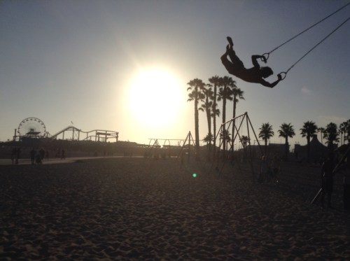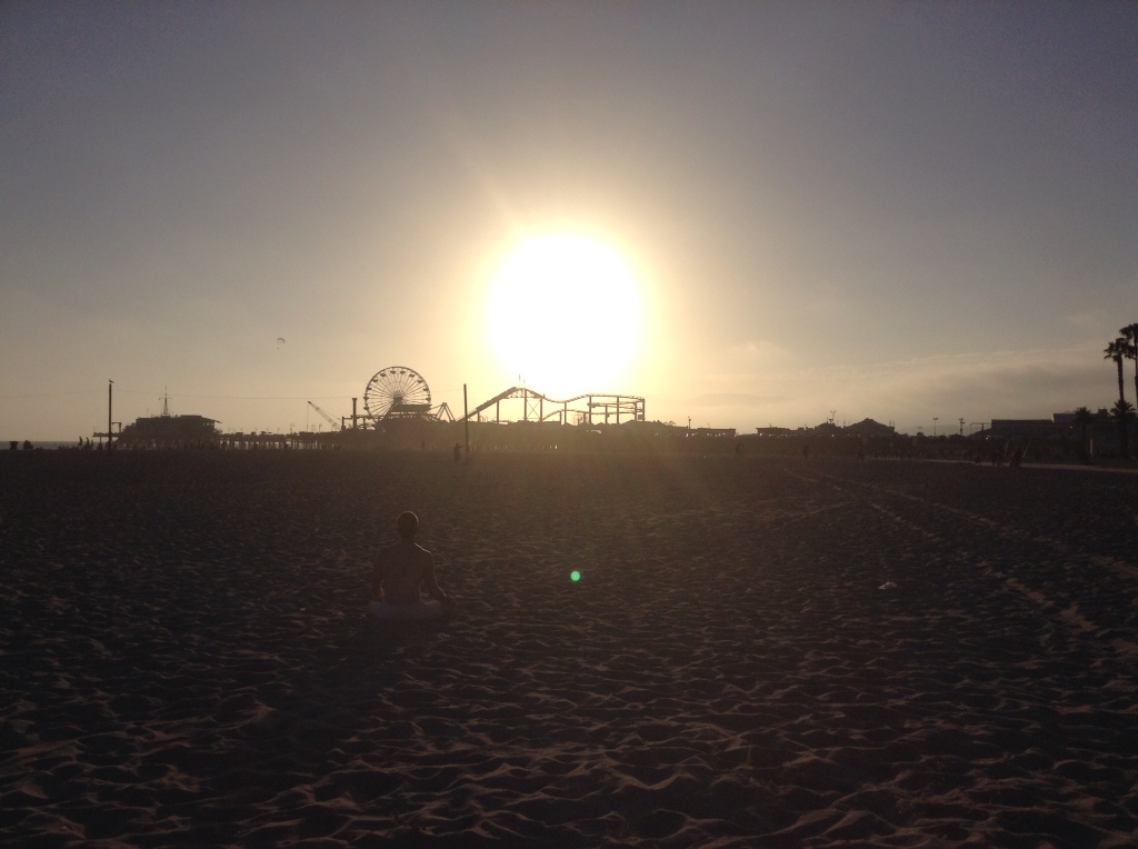 A few days ago my mother and I moved from the plastic fantastic Disneyland to the plastic fantastic Santa Monica. Give it a few more days yet and you might totally make a sandy-skinned, berry-brown, lazy-drawling Cali girl out of me. I have my routine down now: rouse reluctantly, muesli and yogurt for breakfast, beach yoga, stroll over to the haven that is Wholefoods (navigating through ignoring the siren song of the 3rd St Promende shops: well hello again Sephora, what’s that you say Victoria’s Secret, Anthropologie you tease, you’re having a sale?) to shop with the tanned and gorgeous and conscientious (collect kombucha, berries and a giant DIY organic salad), pool laze, attempt to read book, fall asleep, take salad to Santa Monica pier for dinner as the sun sets and shamelessly people watch.