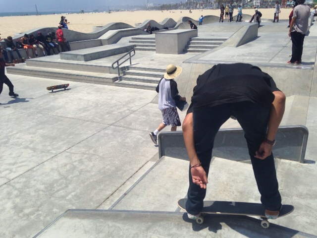 I’m not sure what correct protocol is for the last day of a big trip. Sleep in? Drink yourself into in pleasant puddle over morning mimosas? Eat all of the greasy local foodstuffs that you’ve felt too guilty to eat to date? Obsessively charge all of your Apple devices for the plane? Swear violently and creatively as you try to squeeze your accumulated possessions Into a rucksack that seemed so roomy just three short months ago? I’m spending it doing a little of all of the above, and then half-watching the weirdos of Venice Beach stroll past, half-watching the skater dudes do their best to annihilate themselves on the hot concrete.