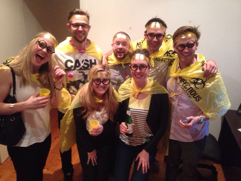 The night ended at jazz club, The Night Cat. There was much twirling and dipping (and dropping!) and colourful props were shed and shared. I had started the night wearing a yellow Infectious Waste bag as a cape and sporting glasses (as part of the Yellow ‘Ebola Virus’ Team) but came home only with a pink tiara and very sore feet.
