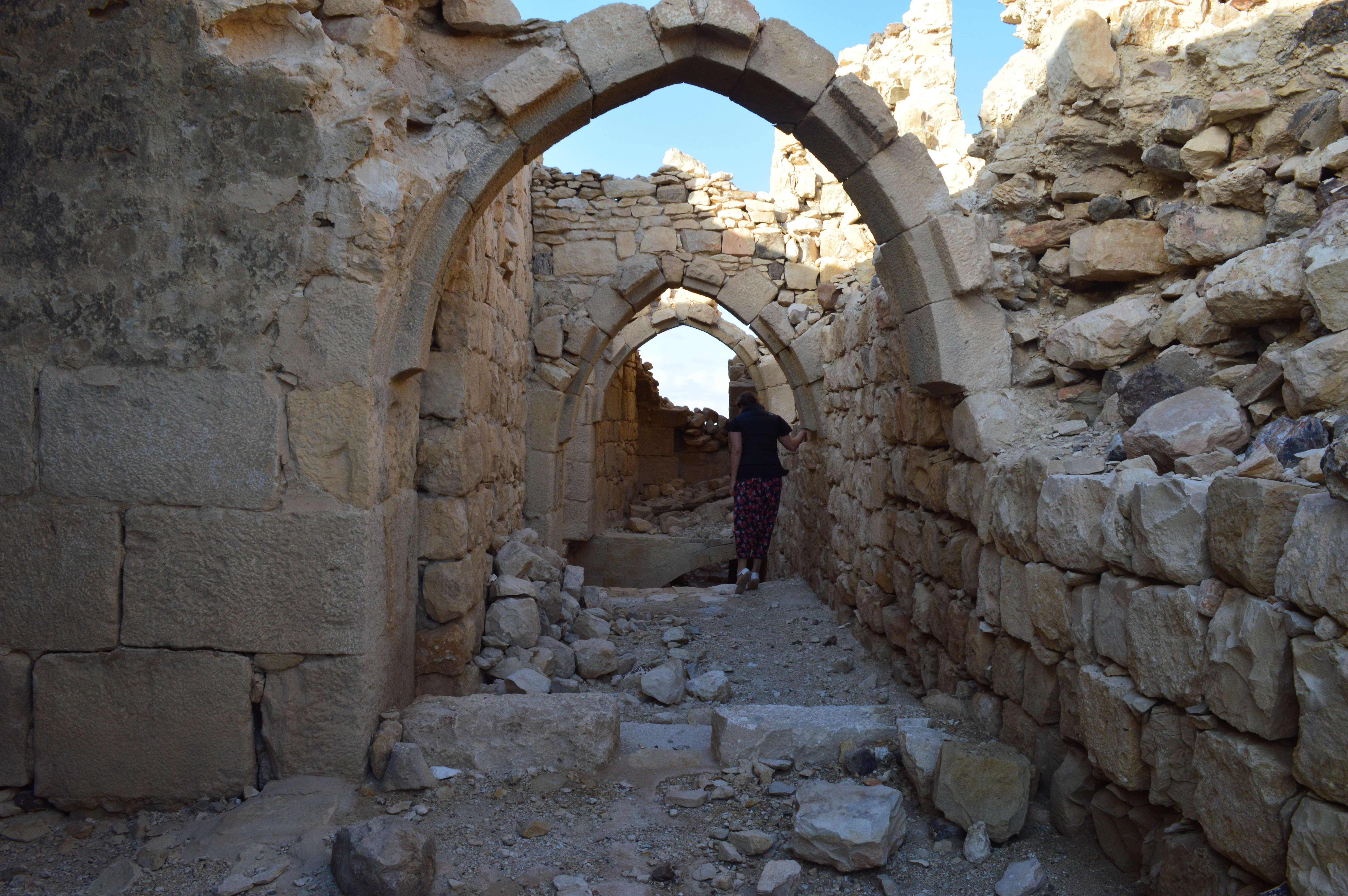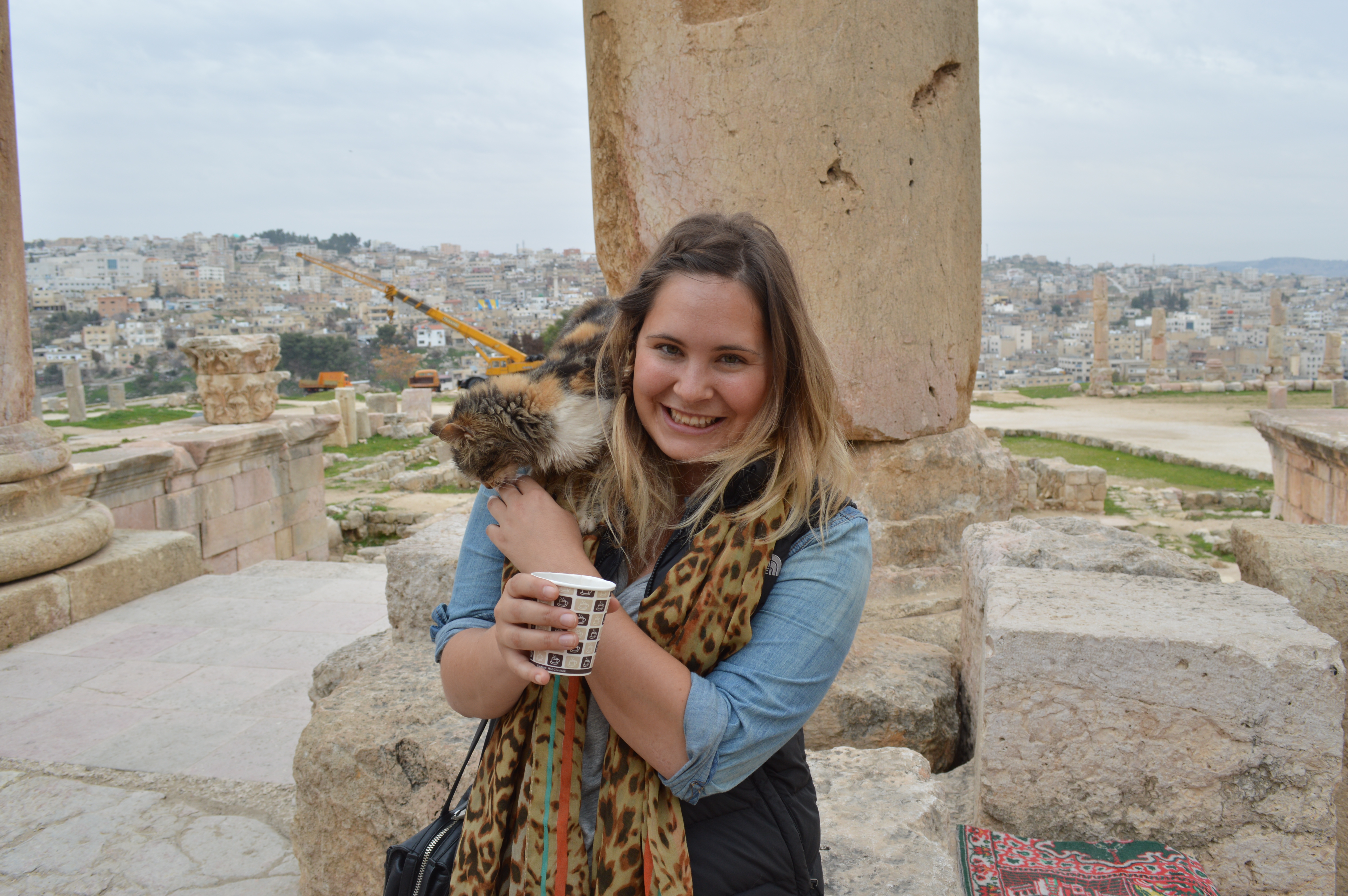 Finally, as the sun started to set, Nadir stopped the car and kicked me out with a, ‘Look behind you!’ Lit up by the dying sun was a perfectly ruined crusader castle. Five minutes later I’d been dropped at its gates. Save for the custodian and and his cat, Noor, both crouched in a little house with a cot, a gas burner and a sign-in sheet, I was the only soul there. I said a little prayer of thanks to travel insurance and explored. There were two story drops into long deserted basements, perilous looking archways and crumbling watch towers. I sat and watched the sun go down, and felt intensely grateful.