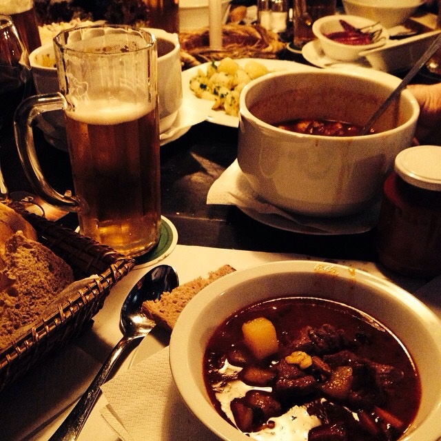 We’re here for Chandler’s thirtieth birthday. He’s been given a big gaudy birthday badge and he isn’t shy about tapping it and issuing birthday commands. His first? Everyone must order a full litre of the local beer, Dreher at lunch. This, plus a Weiner schnitzel the size of birthday boy’s face apiece, costs each of us about 3000 Hungarian forent, the equivalent of less than ten quid. It’s a revelation. After being persistent paupers in London, we feel like emporers in Hungary.