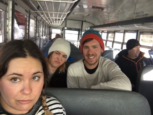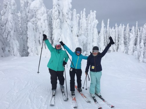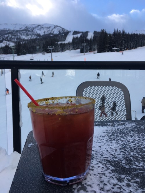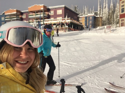 I was one of the first to call it a night around 2am and — somehow — wander home in the snow alone, dodging elk. The next morning, feeling incredibly sorry for myself but damn well determined to ski, I reluctantly kit up and trudge out to the ski bus stop for the midday bus, the last bus up of the day. It's sunny and a crispy negative eight degrees Celsius. I pass some time sending stupid festive Snapchats and then stare in disbelief as my brother, also all kitted up, wanders out of the hotel into the dazzling sun to catch the bus up to the mountain too. “Yo,” he says, pushing hair out of his eyes and looking blearily desolate. We sit and have quiet time. Disbelief is no longer a strong enough word for my state when I see my little sister, blinking into the sunlight and rubbing at her panda eyes, emerge — also in her ski gear. “Hi,” she mutters softly and sits down between us. The three of us endure the bus ride up the mountain in the companionable, hungover silence. I think it's the only time we spend with just the three of us and is sweet for that (otherwise it mega sucked). Up at Marmot Basin, the resort, a round of Caesers somewhat restore us, I go on a brief and bleary-eyed shopping binge in the gear shop (goggles, sweater, bandana, beanie — sure I'll take it) and and we get everyone out onto the mountain, catching up with those more diligent souls who have been here since first tracks. I get to ski with my brother which is something I never thought I would ever do. Anyway, hashtag wholesome, hashtag Canadian heritage, hashtag siblings.