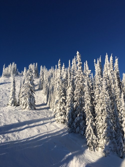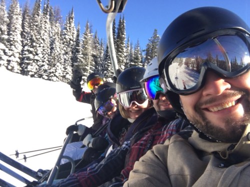 In Silverstar we meet up with Flipper! He's there with his entire family and newly acquired Swedish girlfriend. Silverstar, the Canadian ski resort near Vernon, BC, is quite literally my happy place, the image I conjur up to restore calm to my raging mind on late work nights, the backdrop to too many of my favourite memories. With my family and Flipper and his around, beautiful snow turning trees into ghosts along the edge of familiar runs, the little gingerbread village alight with fairy lights, I'm ecstatic with love for it. I'm like Nakiska with a puppy. There are seven of us crammed into a tiny flat made for four (Bunky and Powerjam are across the resort in a much more civilised accomodation) that we quickly fill with our gear, beers and bottles of Fireball and noise — and I don't even mind.
