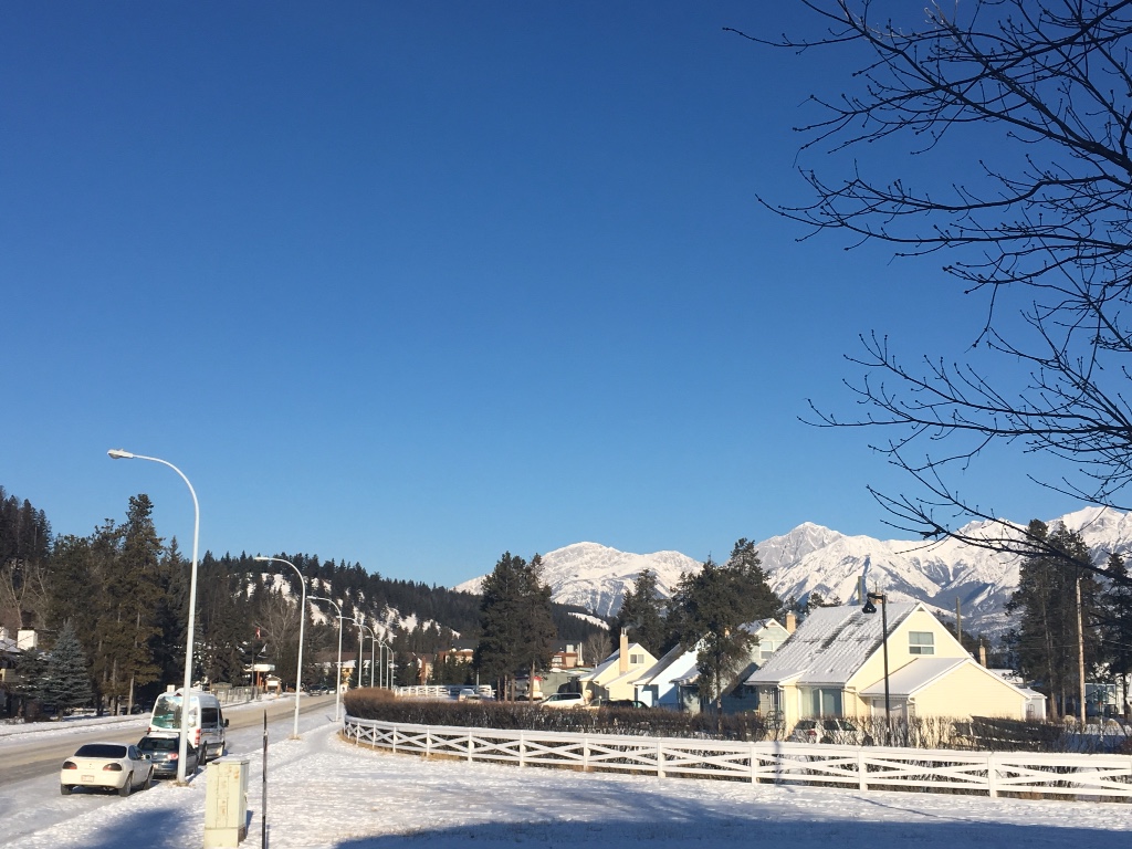 It's in the middle of a Canadian national park, hours from anywhere, and it looks exactly like you would expect it to. It is cradled by jagged snow-capped mountains. The trans-Canadian railway borders one side of town. There is a local band of elk, no decent coffee, a lot of places offering maple bacon and BC salmon. The town holds 5,000, all of whom seem to know one another. There's a lot of polar-fleece. It's bloody cold.