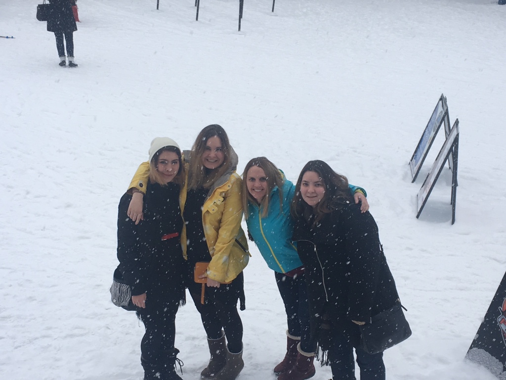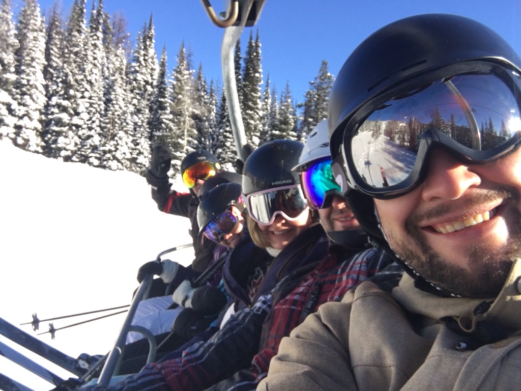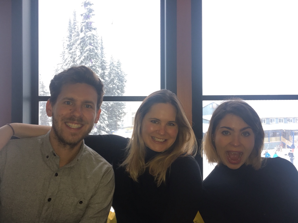 I was one of the first to call it a night around 2am and — somehow — wander home in the snow alone, dodging elk. The next morning, feeling incredibly sorry for myself but damn well determined to ski, I reluctantly kit up and trudge out to the ski bus stop for the midday bus, the last bus up of the day. It's sunny and a crispy negative eight degrees Celsius. I pass some time sending stupid festive Snapchats and then stare in disbelief as my brother, also all kitted up, wanders out of the hotel into the dazzling sun to catch the bus up to the mountain too. “Yo,” he says, pushing hair out of his eyes and looking blearily desolate. We sit and have quiet time. Disbelief is no longer a strong enough word for my state when I see my little sister, blinking into the sunlight and rubbing at her panda eyes, emerge — also in her ski gear. “Hi,” she mutters softly and sits down between us. The three of us endure the bus ride up the mountain in the companionable, hungover silence. I think it's the only time we spend with just the three of us and is sweet for that (otherwise it mega sucked). Up at Marmot Basin, the resort, a round of Caesers somewhat restore us, I go on a brief and bleary-eyed shopping binge in the gear shop (goggles, sweater, bandana, beanie — sure I'll take it) and and we get everyone out onto the mountain, catching up with those more diligent souls who have been here since first tracks. I get to ski with my brother which is something I never thought I would ever do. Anyway, hashtag wholesome, hashtag Canadian heritage, hashtag siblings.
