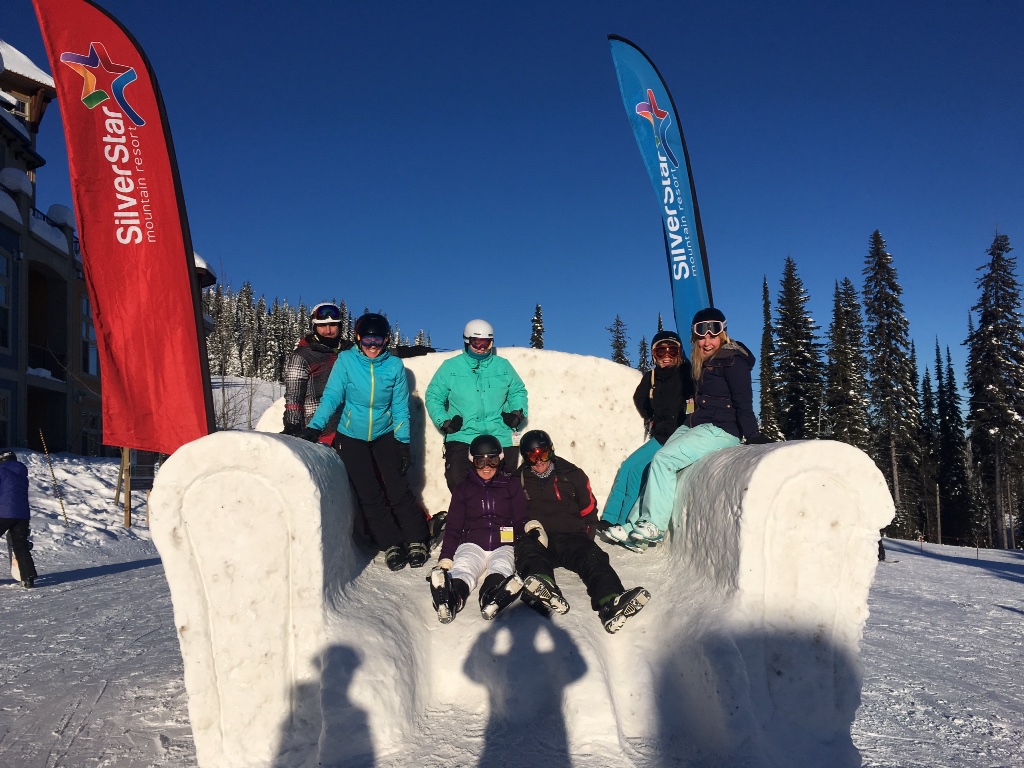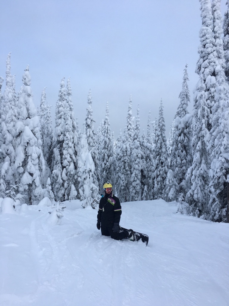 In Silverstar we meet up with Flipper! He's there with his entire family and newly acquired Swedish girlfriend. Silverstar, the Canadian ski resort near Vernon, BC, is quite literally my happy place, the image I conjur up to restore calm to my raging mind on late work nights, the backdrop to too many of my favourite memories. With my family and Flipper and his around, beautiful snow turning trees into ghosts along the edge of familiar runs, the little gingerbread village alight with fairy lights, I'm ecstatic with love for it. I'm like Nakiska with a puppy. There are seven of us crammed into a tiny flat made for four (Bunky and Powerjam are across the resort in a much more civilised accomodation) that we quickly fill with our gear, beers and bottles of Fireball and noise — and I don't even mind.
